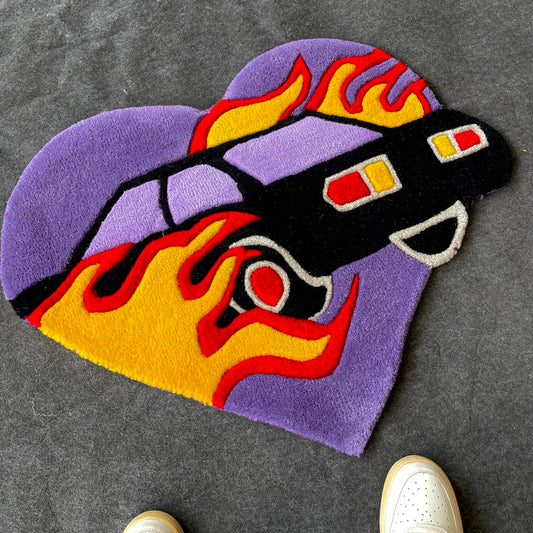 Flaming Car Hand-Tufted Rug