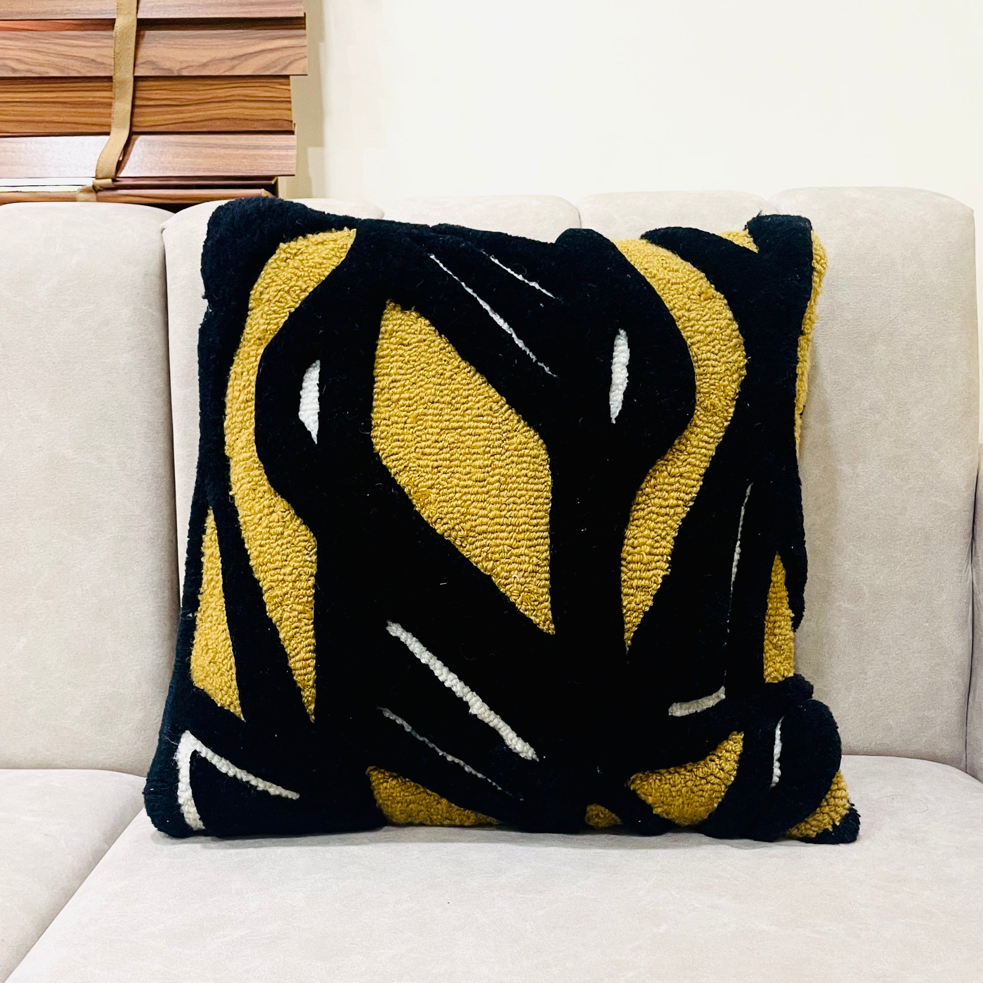 Unmatched Coziness: Nestle into the plush comfort of our tufted cushion, featuring an 18mm cut pile and loop pile crafted from the finest New Zealand wool (handmade in India).